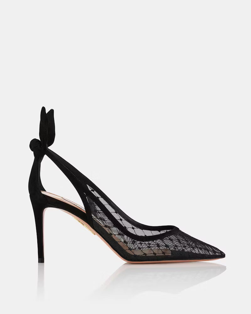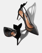 Trends come and go, but our Bow Tie Net Pumps are here to stay. Designed with classic pointed toes, slim 85 mm heels and signature side cutouts, this seasonal iteration is crafted from panels of see-through mesh and supple suede in timeless black. Wear now and cherish forever.