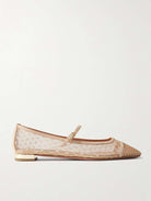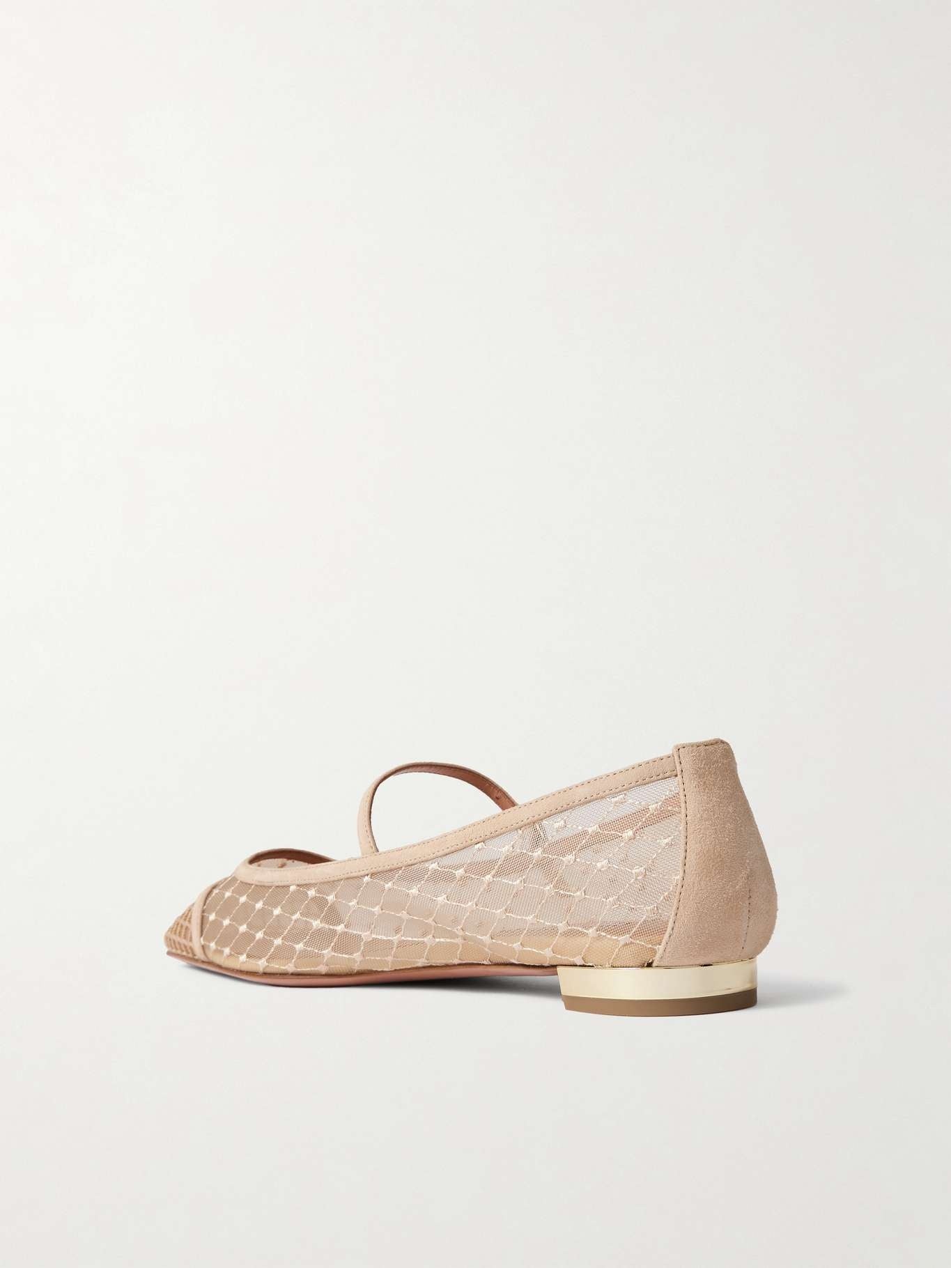 Aquazzura's 'Juliette' flats combine the chic look of Mary Janes and pointe-style ballet flats. They're made from structured mesh embroidered with the tiny dots and a diamond motif and have tonal suede trims. The metal-tipped heels are a brand signature.