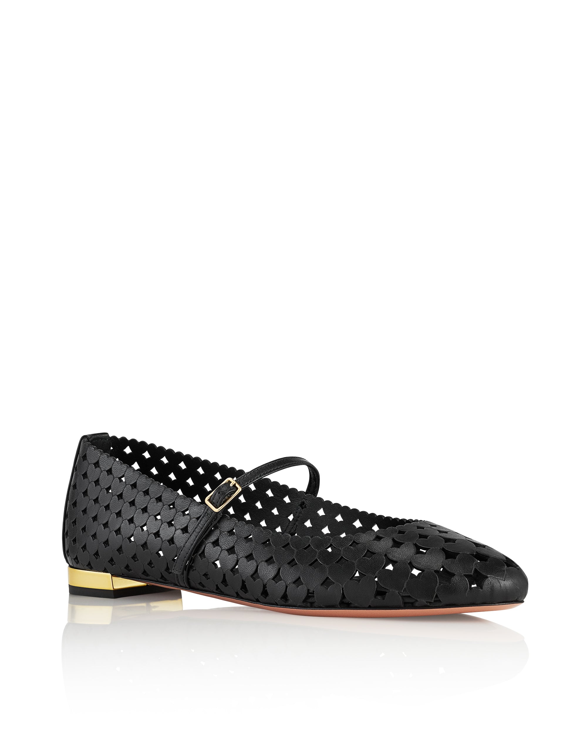 Crafted in glossy black patent leather, our Amourose Flats exude a confident and chic allure. The delicate heart-shaped cut-outs bring a playful charm to the minimal round-toe silhouette. Make a statement with this bold pair, perfect for turning heads on a stylish city outing