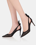 Trends come and go, but our Bow Tie Net Pumps are here to stay. Designed with classic pointed toes, slim 85 mm heels and signature side cutouts, this seasonal iteration is crafted from panels of see-through mesh and supple suede in timeless black. Wear now and cherish forever.
