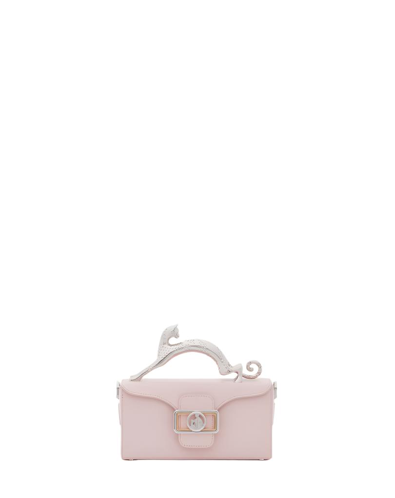 The Pencil Cat is one of the House's iconic bags. It is embellished with a sculptural jewelry handle, inspired by an andiron belonging to Jeanne Lanvin and designed by French interior decorator Armand-Albert Rateau. It is handmade and requires the work of more than ten craftsmen. This season features a leopard print version of this unique bag.