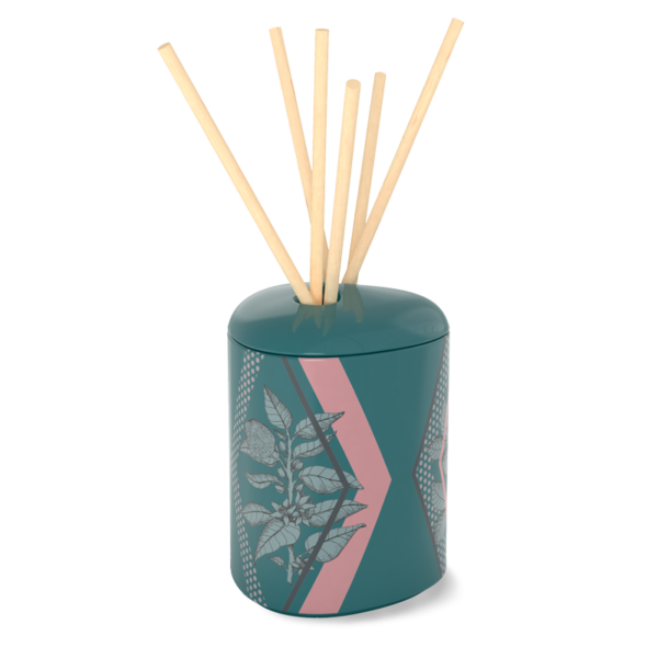 The light volcanic teal-coloured perfumed room diffuser is a reflection of the imaginative countryside which is home to Mount Etna’s lava clay, and its iron micro-elements. Its artistic fragrance has been finely created by Maryka Symard. The perfumed room diffuser reveals notes of lemon, cardamon, smoked tea, rose cedarwood and musk, cleverly mixed into a combination of spice and vibrance which caresses all the senses together.