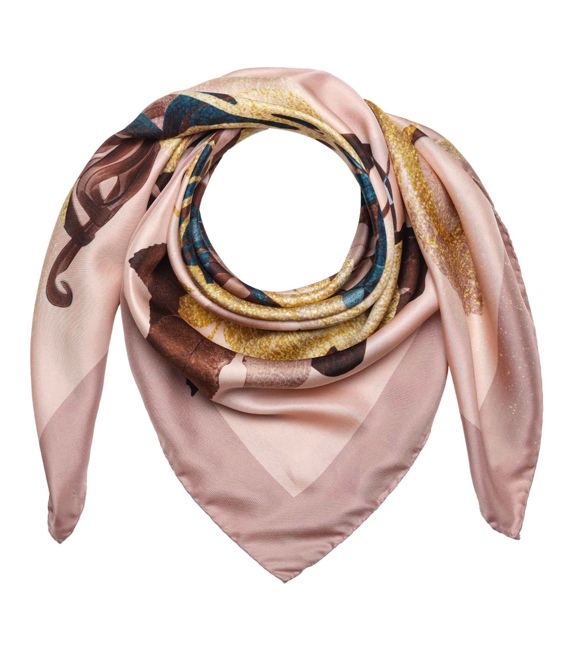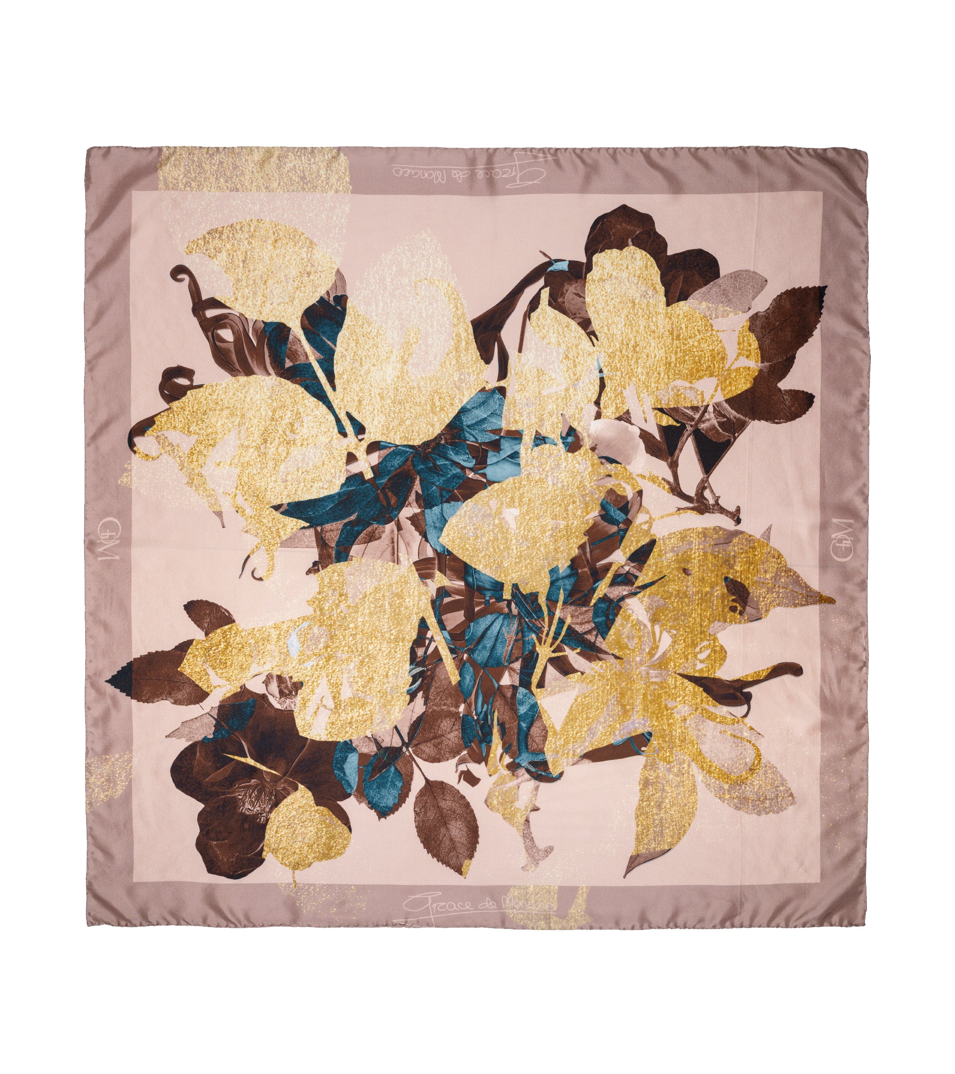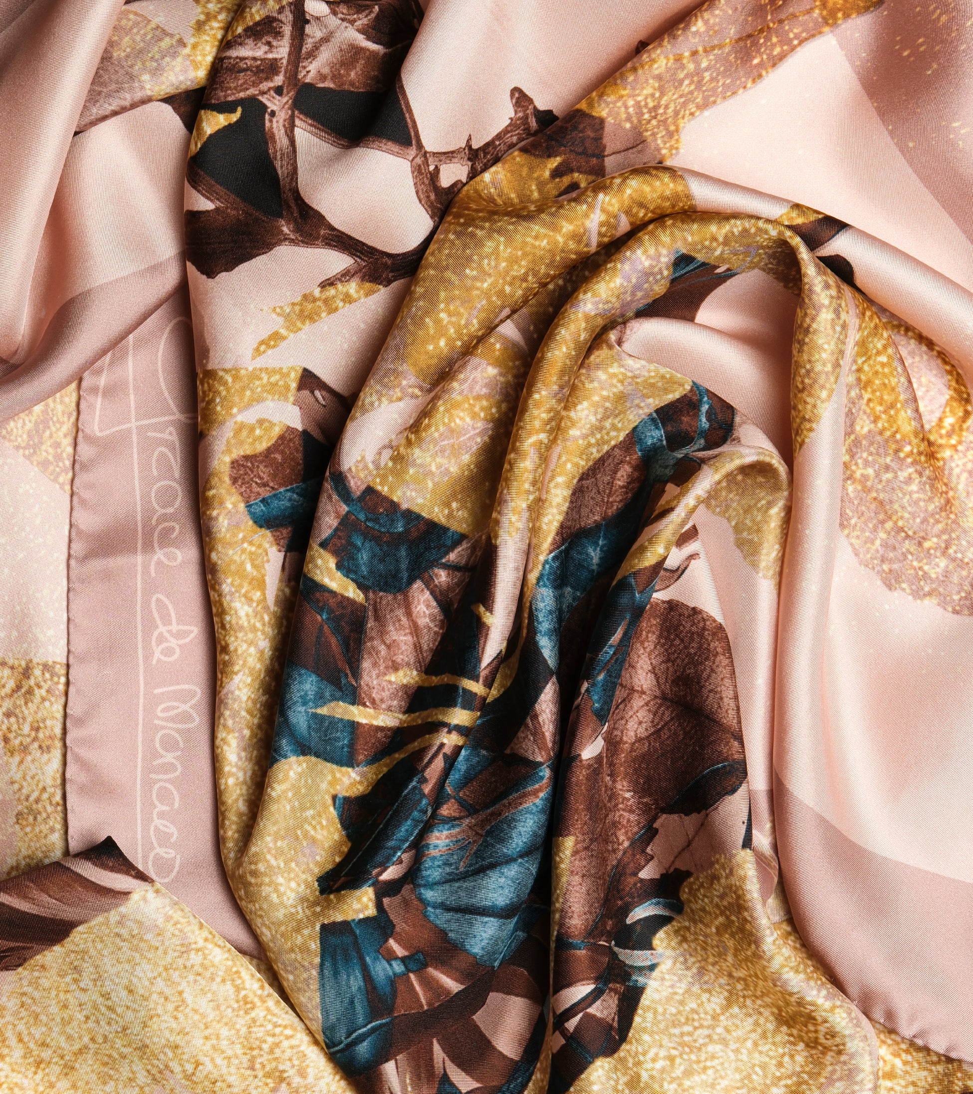 Reminiscent of Princess Grace’s pressed floral designs, The Promenade Silk is a modern interpretation of the floral bouquet captured in the Promenade Sur Le Rocher fragrance. The Rose Gold edition captures the regal aura of the Princess Herself with delicate and pale rose hues, shimmering gold, and sapphire jewel tones.