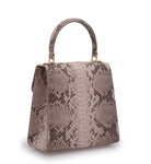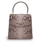Cardinal signature Tiffany top handle bag is perfect accessory to wear cross seasons. The bag has a medium size and it is perfect for daily use in any occasion, you can meeting with friends, walking around the city, shopping while feel light and fashionable. This timeless bag has been created in Milano by experted artisans in clean elegant shape. It is handcrafted from genuine matte python skin in light brown color with shadow of pink, detailed with Cardinal clip lock. The top handle is comfortable for hand or elbow carry and a removable strap for over-the-shoulder wear. The bag is roomy enough for your essentials like wallet, keys and make up. A special Cardinal clasp keeps your essentials safe, there is one internal pocket. This chic accessory will make a lady elegant and fashion at the same time.