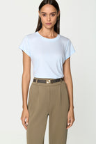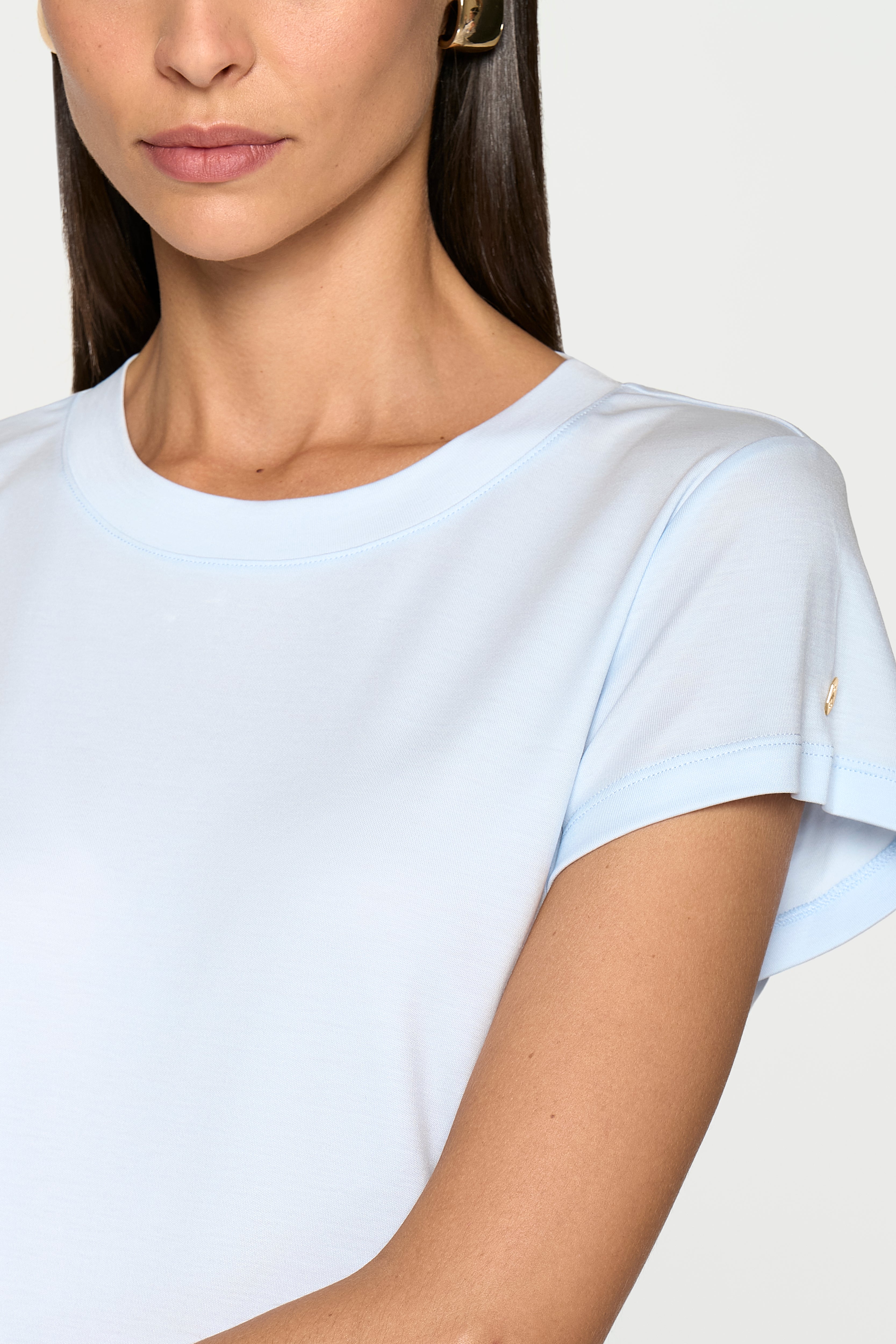 This loose-fit t-shirt features a refined neckband in self-fabric and cropped sleeves, crafted from breathable and cooling Tencel fabric for superior comfort in warm weather.