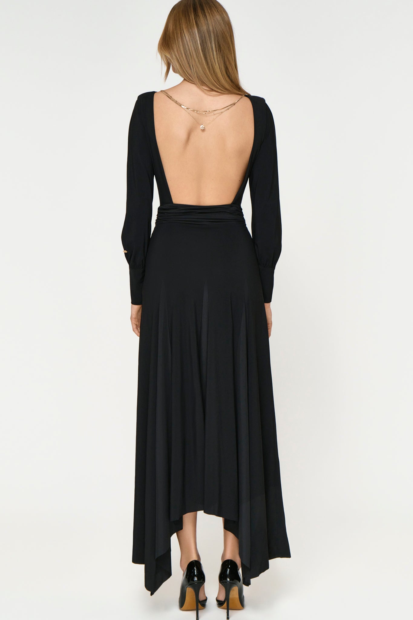 Fashion-forward and beyond functional, the SCINTILLA is made of super soft stretch fabric with a removable back strap to cover the bra. It features a V-neck, a snug fit through the waist, and sewn-in compressive panties. The gorgeous deep cut back is a true eyecatcher with its decorative, removable gold chain. Just add your best heels and a mini bag and get ready to dazzle the night away.