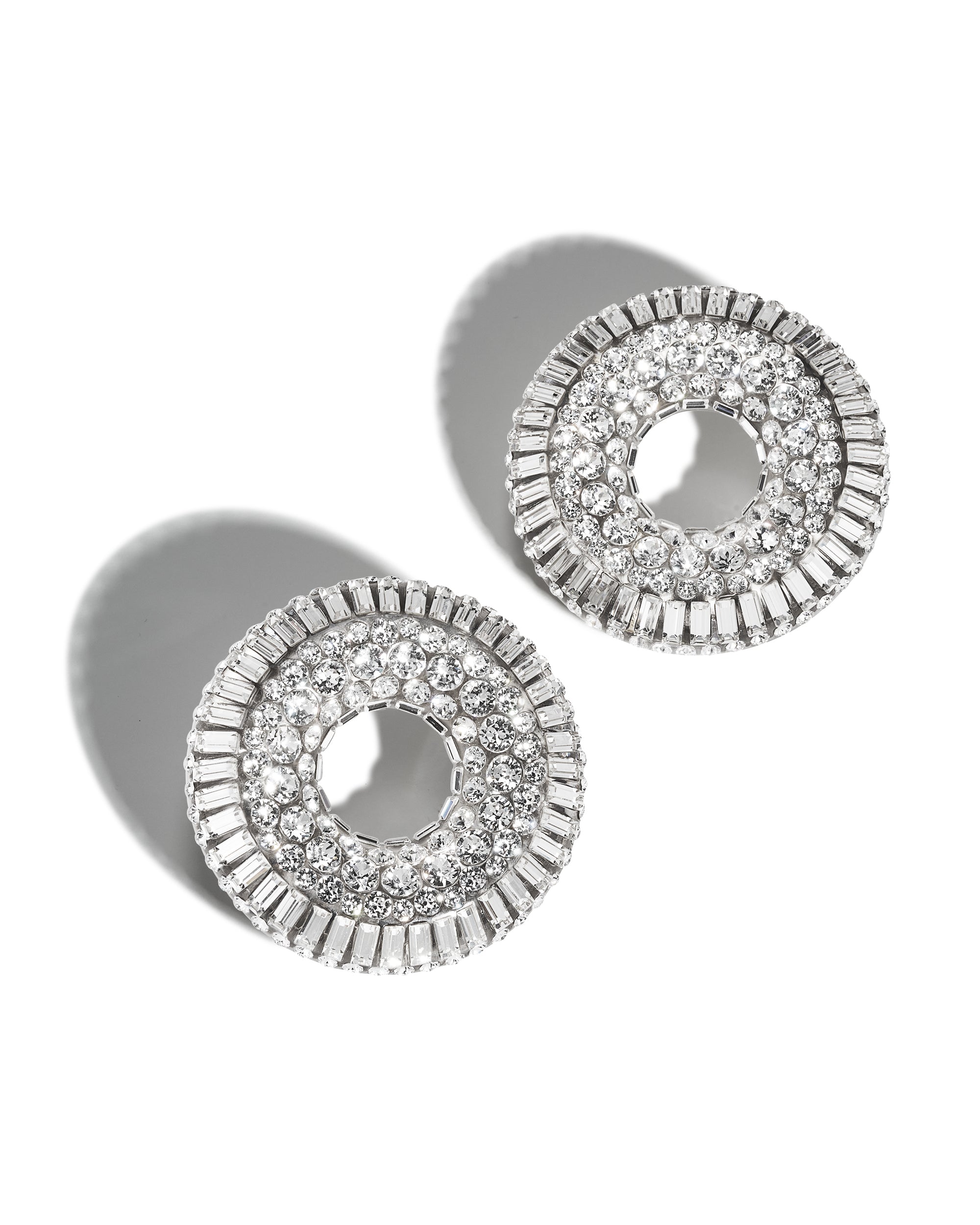 With a fine arrangement of rhinestones in various shapes and sizes, these Mini Hoop earrings are a jewellery-box staple. Their dazzling design nods to the seasons signature hoop embellishment, seen across Aquazzuras footwear and bags.