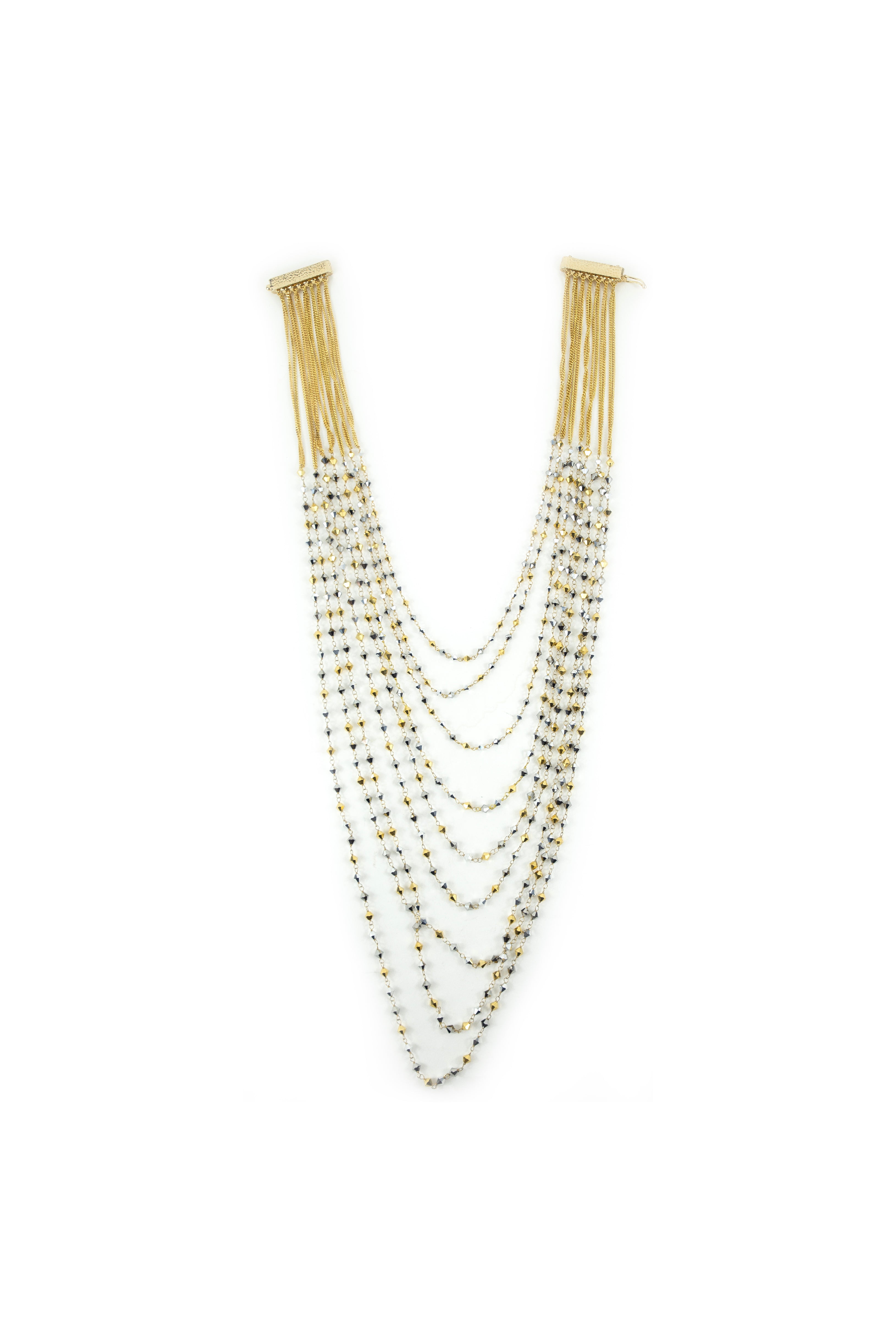 "Pepita" handmade necklace made of multicolored beads and brass. Gold toned brass. Made in Italy.