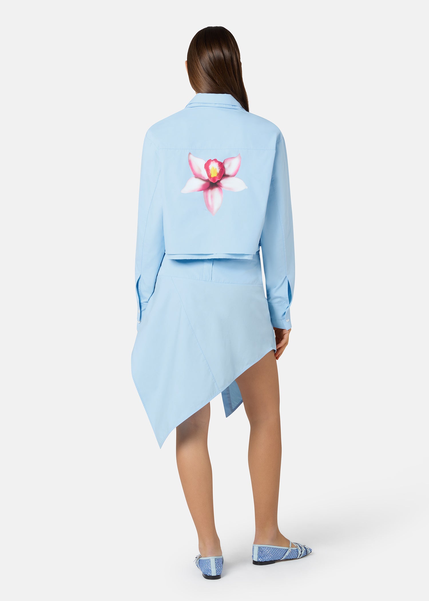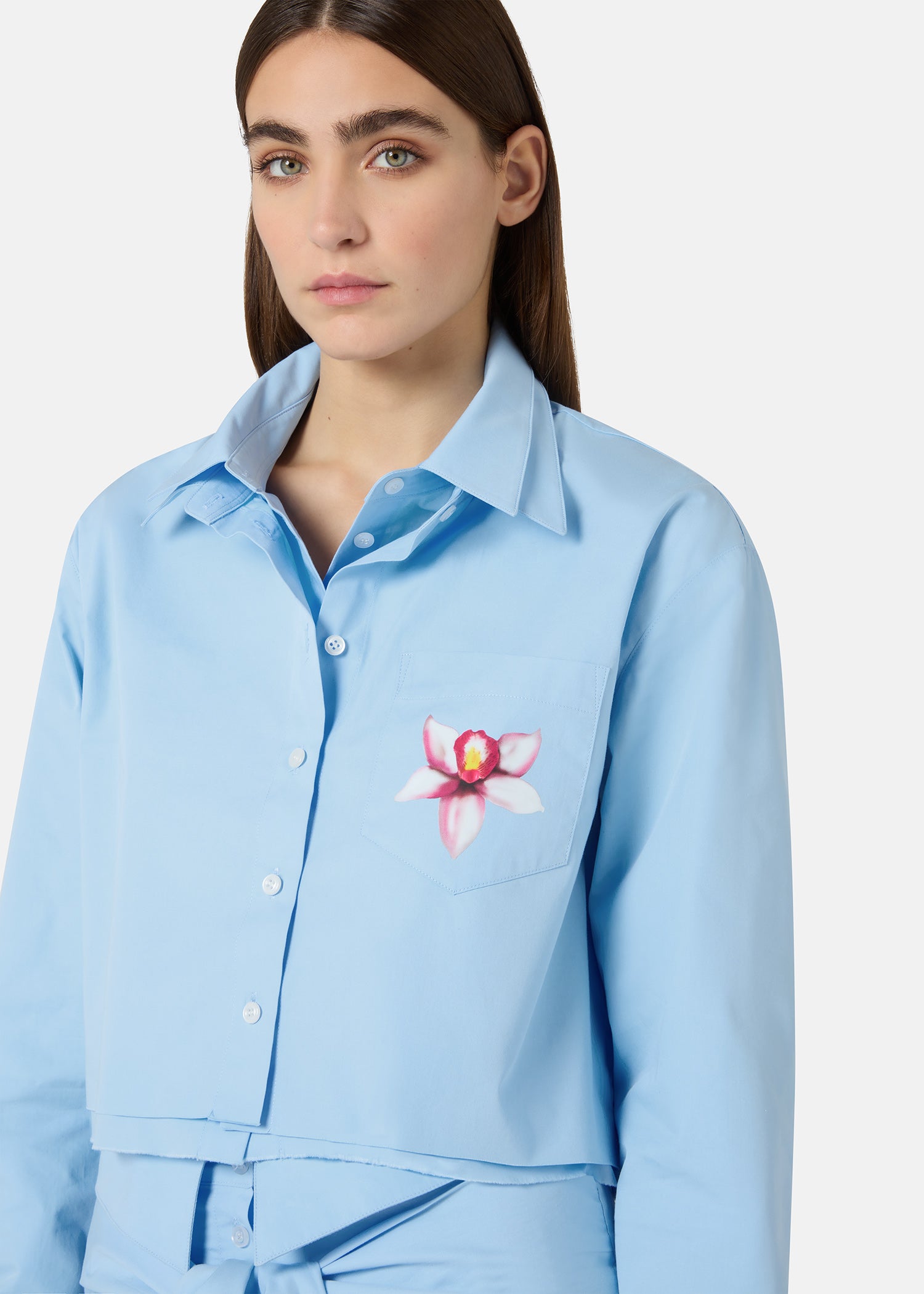 ORCHID PRINT BLUE CROPPED DOUBLE SHIRT