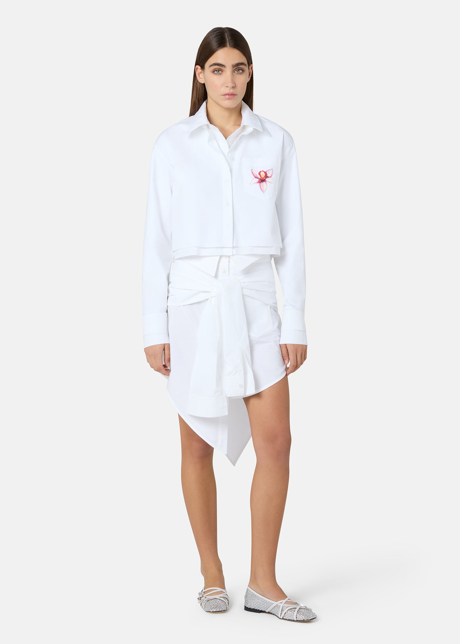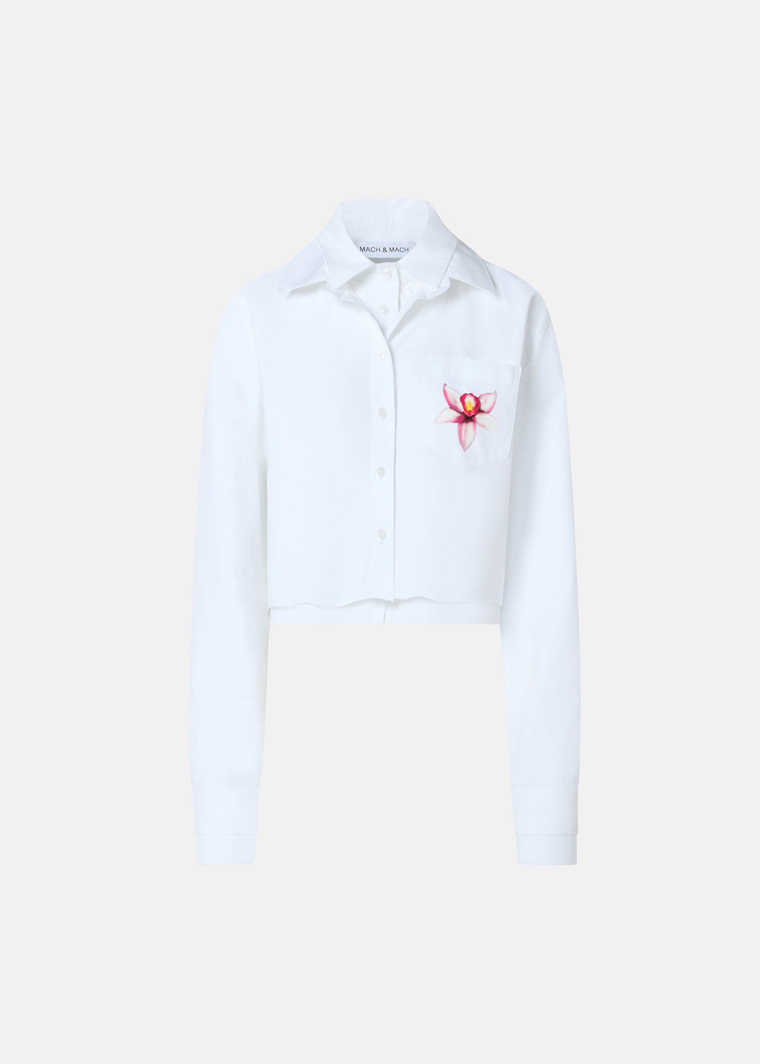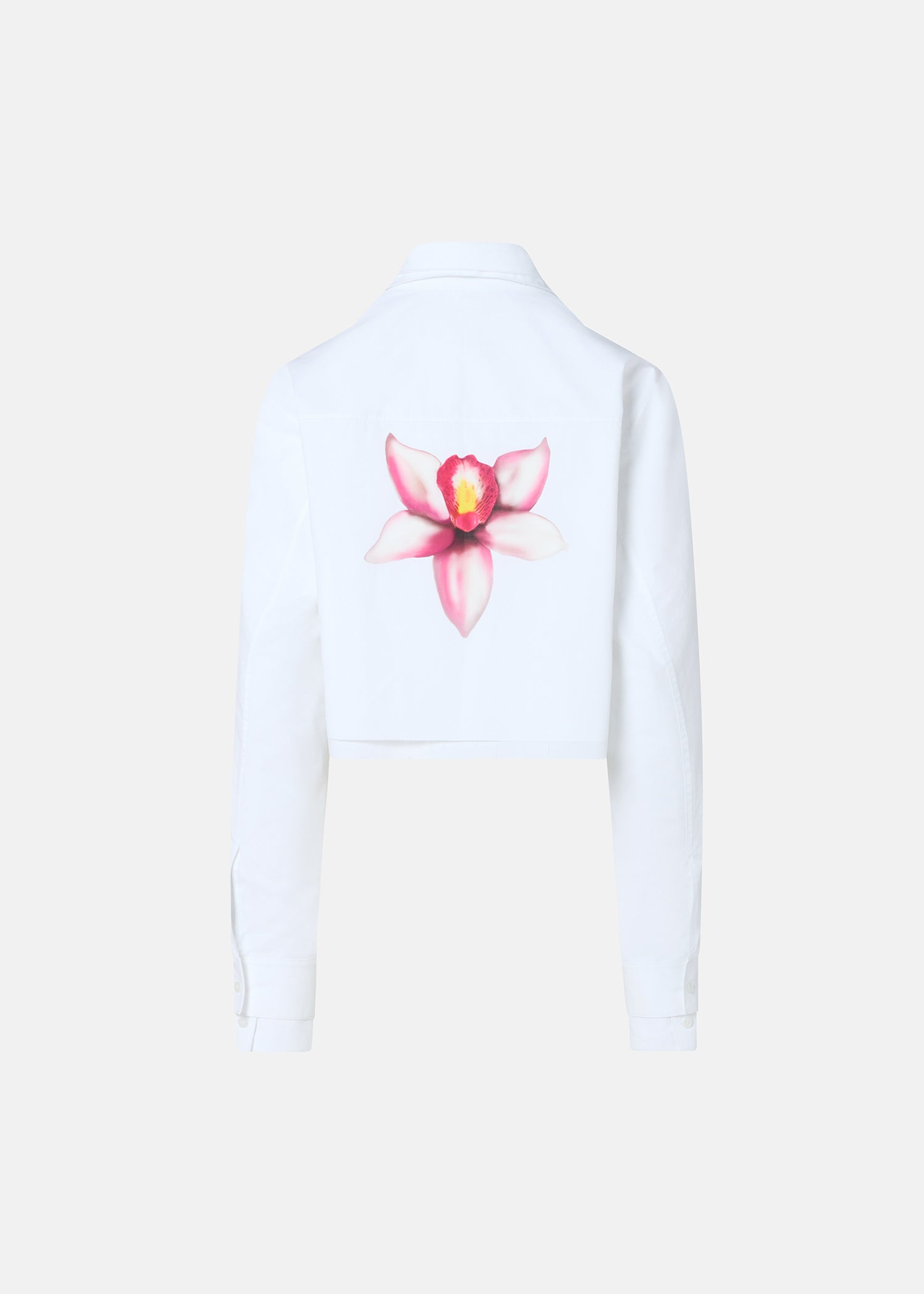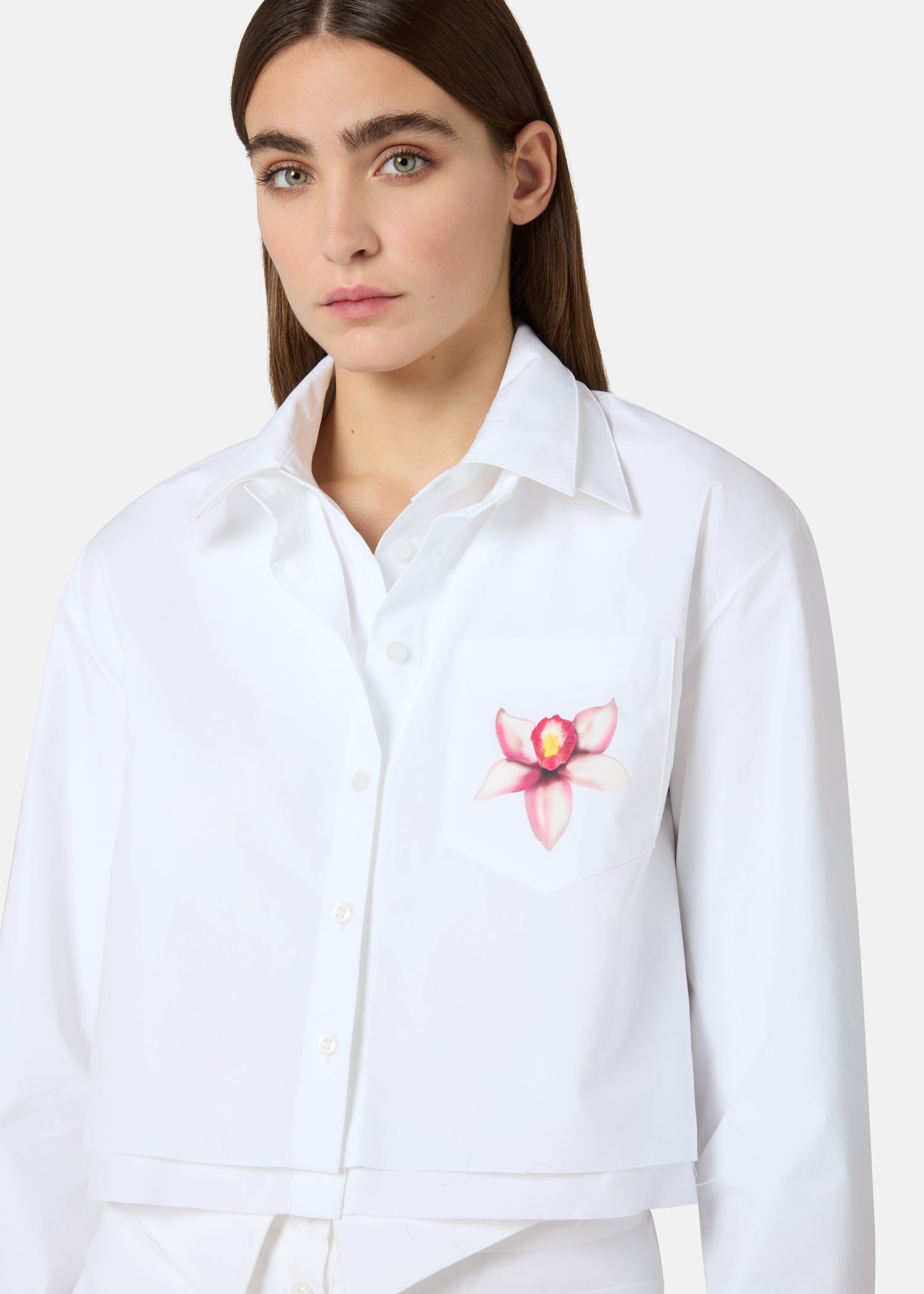 ORCHID PRINT WHITE CROPPED DOUBLE SHIRT