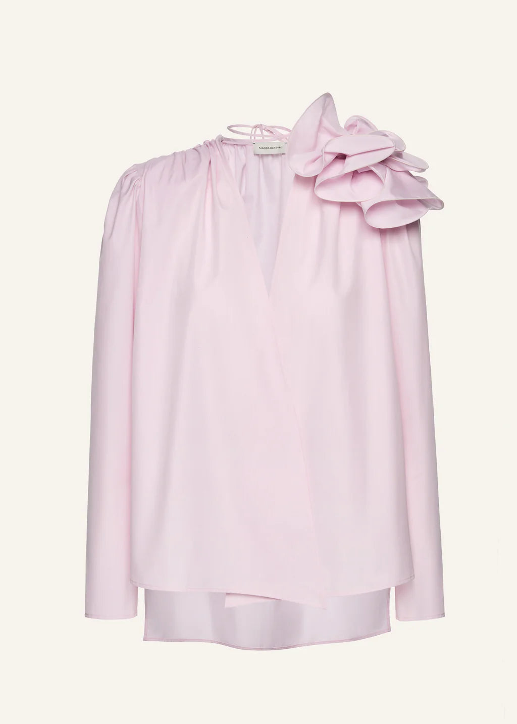 Magda Butrym's classic long-sleeve flower applique blouse with detachable shoulder pads and strappy tie detail at the neck.