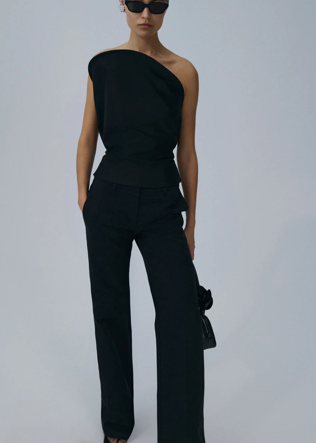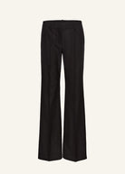 Classic silk trousers with a relaxed fit and slight flare leg, finished with a pleat down the front.