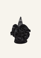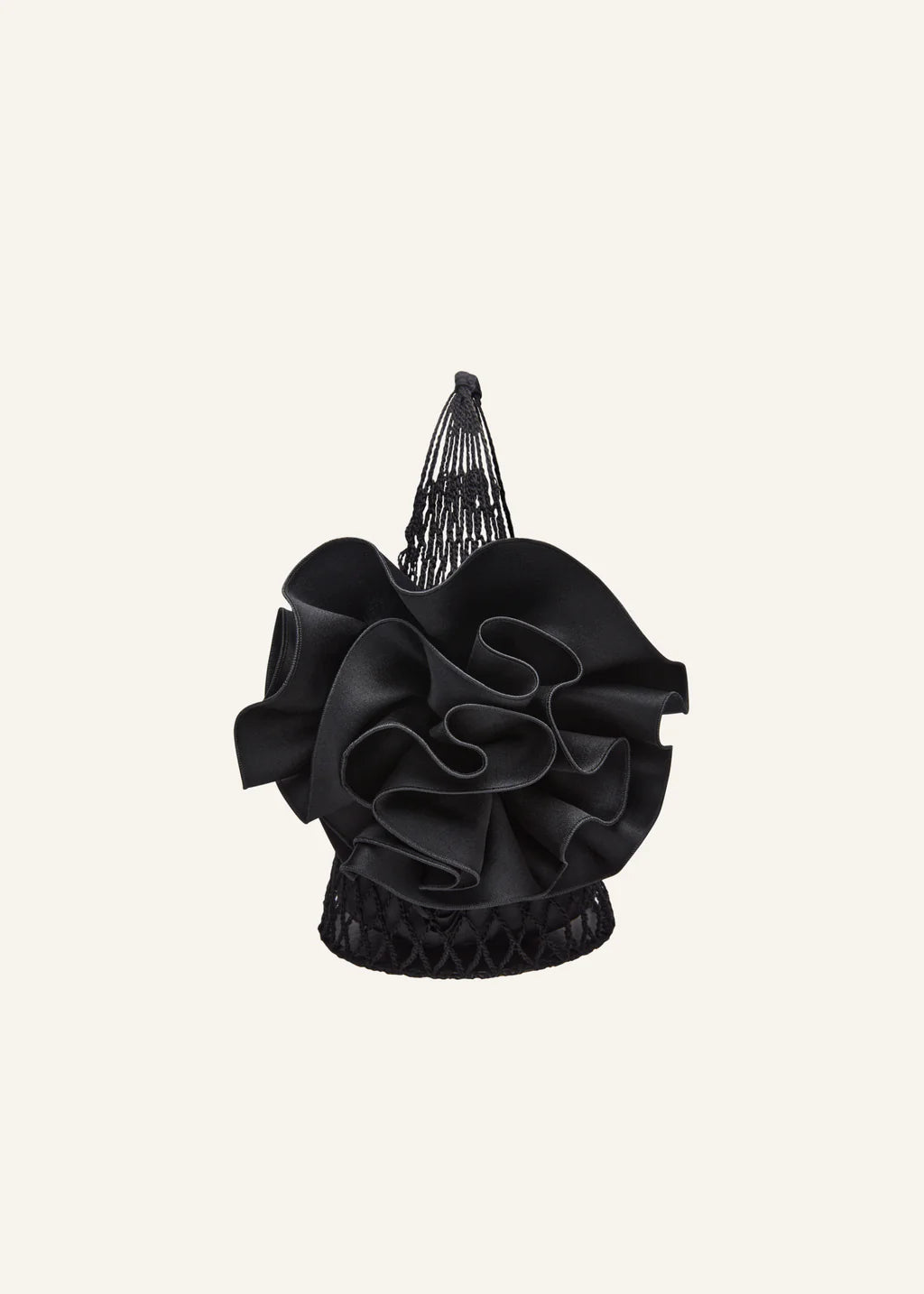 The Devana bag is a tote bag made from large netted crochet using natural fibers, creating the perfect bag for summer. A large satin flower adorns the front of the bag. Small size.