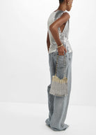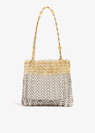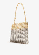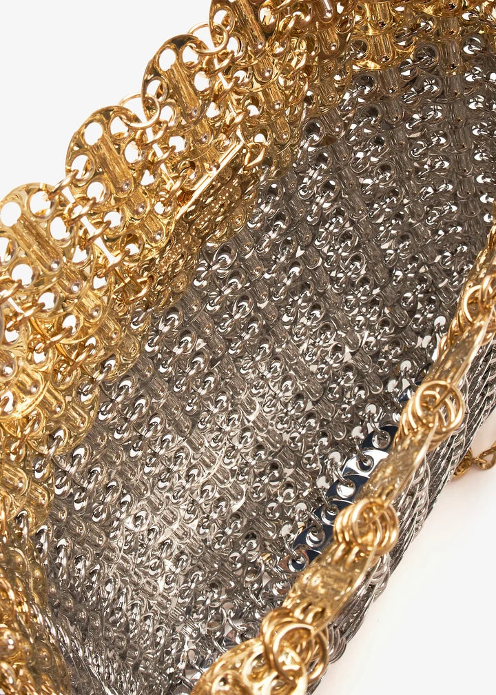 Crafted from hand-assembled metallic pieces, the 1969 bag symbolizes the Rabanne aesthetic.