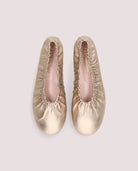 Faye ballerina with an elasticated trim in gold metallic leather with rubber sole, leather insole and lining.