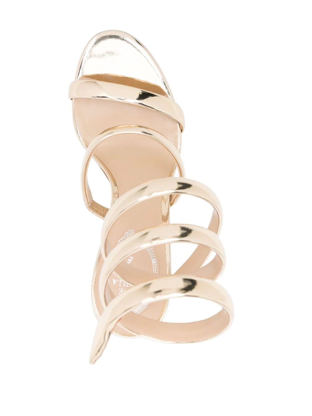 The Cleo sandals are defined by their serpent-inspired design. René Caovilla introduces this modern reinterpretation of the iconic profile in a mirrored gold-tone hue that captures and reflects the light.