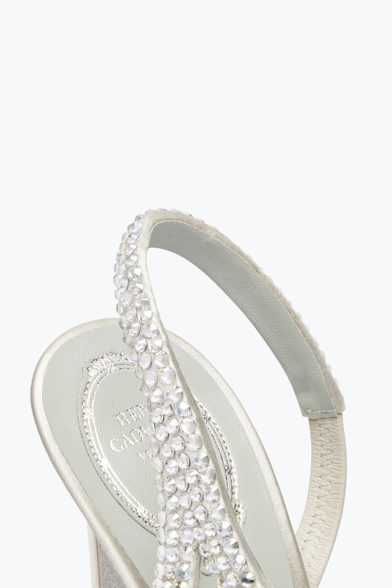 When the dress code calls for sophistication and distinctiveness, the Lisa sandal is the ultimate style for special occasions and celebrations. With its retro-designed straps - entirely embellished with maxi crystals - and the versatile and classy silver tone, this style is designed to complete the look with a touch of sparkling elegance.
