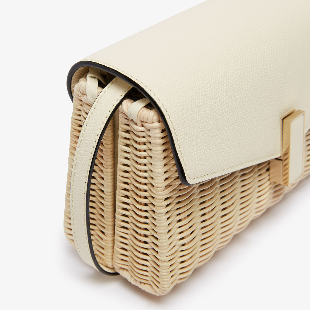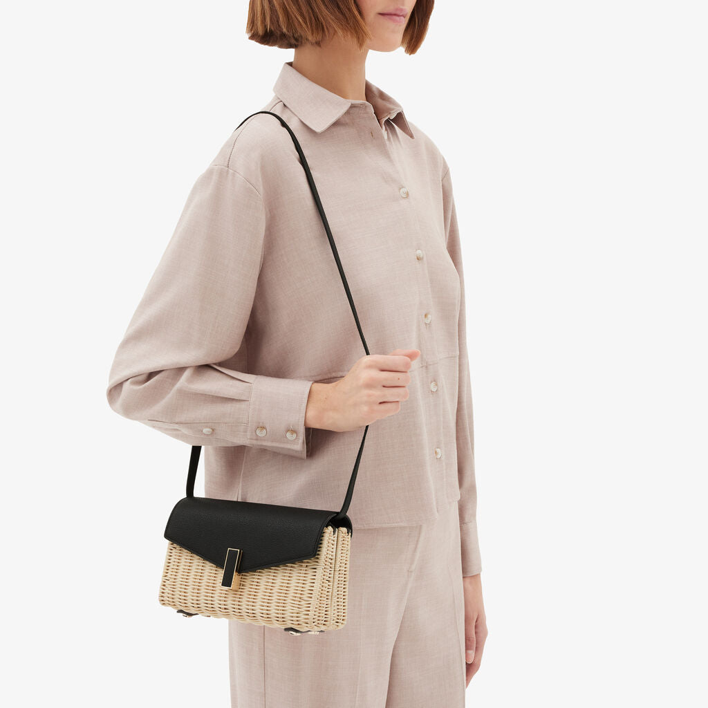 The Iside Wicker Clutch exudes warm-weather elegance. An exceptional edition of our iconic Iside silhouette, this sophisticated companion has been crafted from natural woven wicker and features a geometric top flap crafted from our signature Millepunte leather in our multidimensional Black. Featuring an internal card slot, a thin adjustable shoulder strap and our black lacquered Costa edging, it is a compact ode to exquisite craftsmanship.