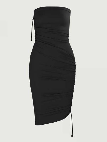 The fully customizable Fatal draped dress uses drawstrings to achieve a variety of