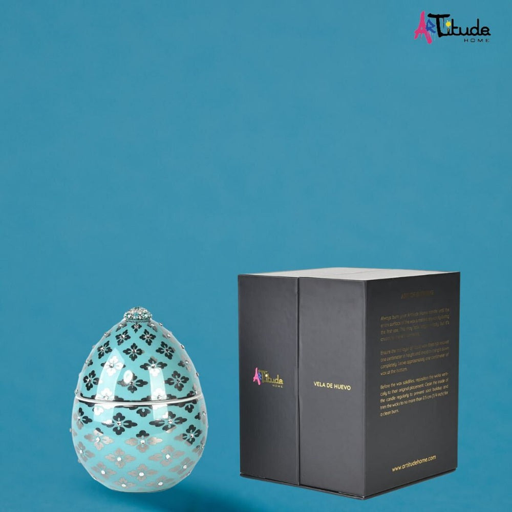 Elevate your space with our exquisite Vela De Huevo Aqua scented candle, uniquely crafted in the shape of an elegant egg. Adorned with shimmering rhinestones, this candle is a stunning centerpiece that adds a touch of luxury to any decor.