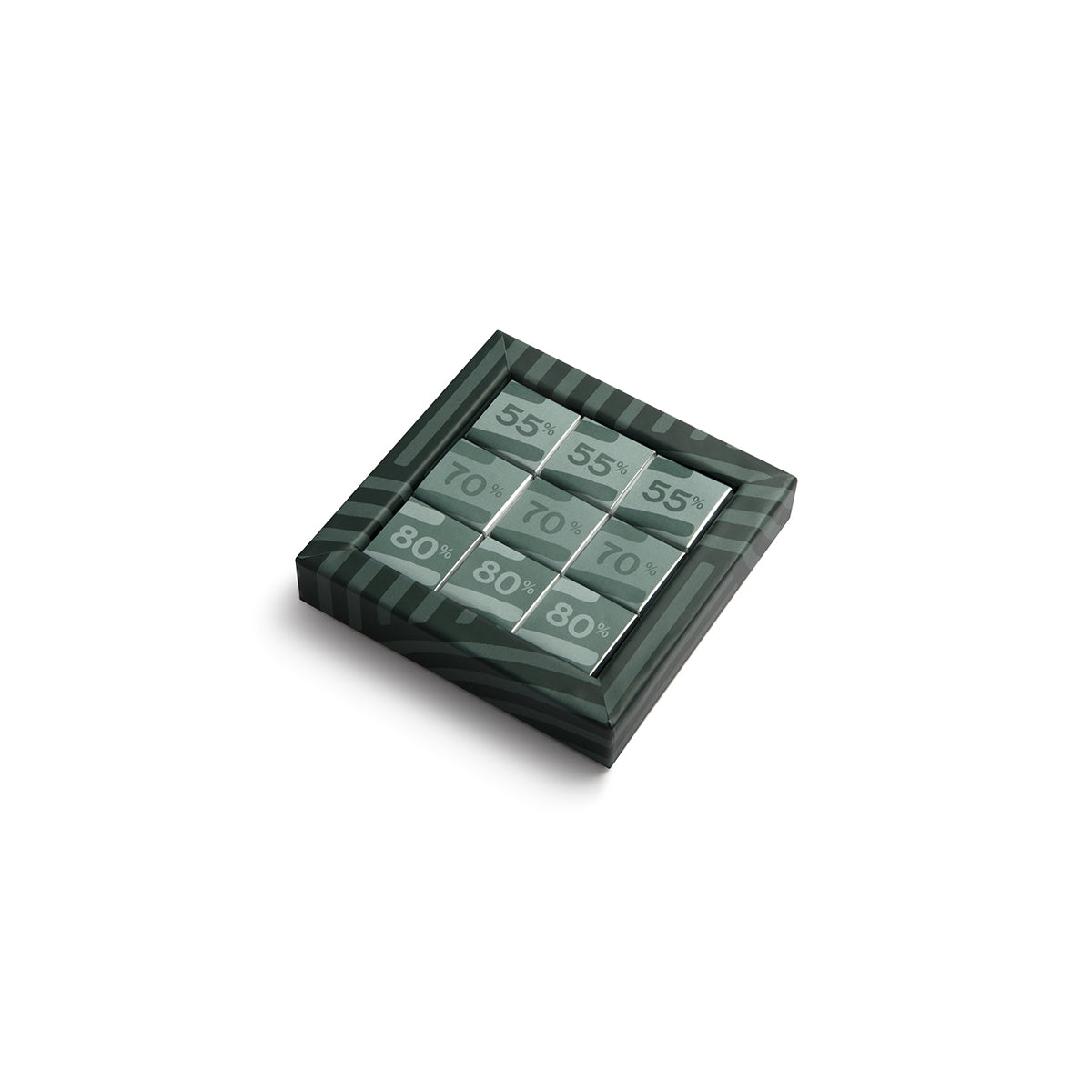 Gift box ideal for dark chocolate lovers, containing delicious plain dark chocolates for pure enjoyment, 160g.