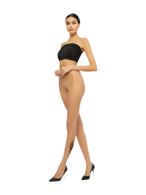 Sheer and lightweight, the summery nude tights look and feel like a second skin. For a playful accent, the tights feature a hand-embellished dragon print on the left ankle. A soft, knitted-in waistband keeps the look in place all day.