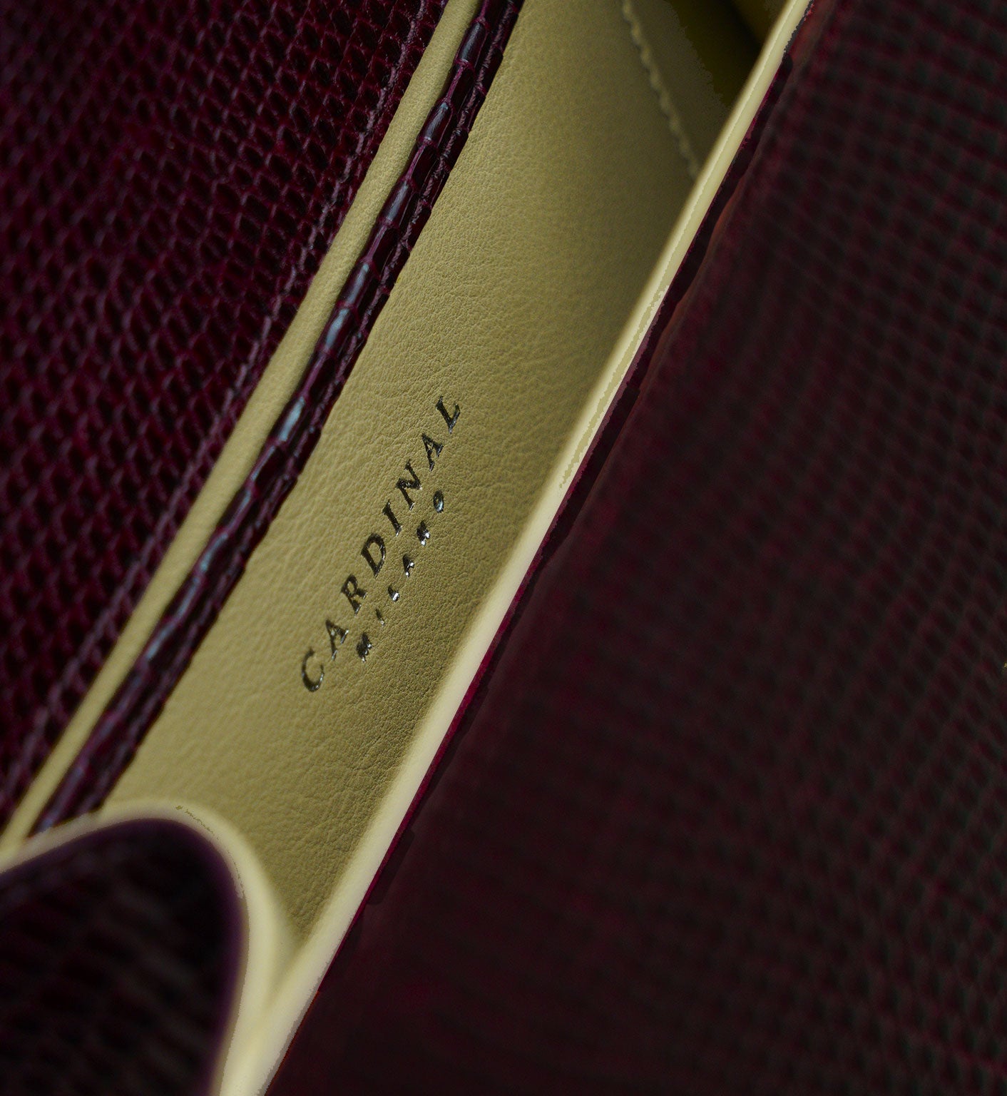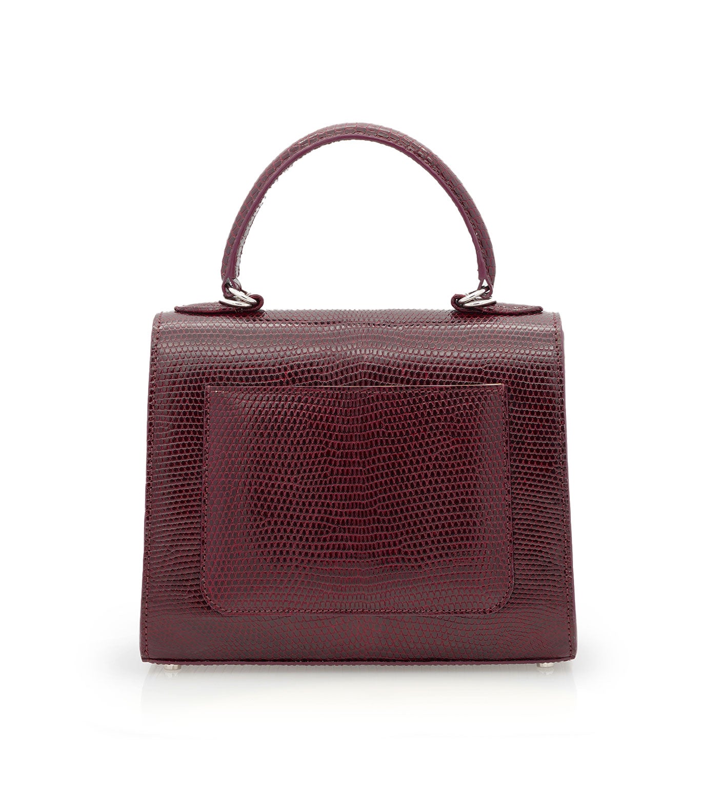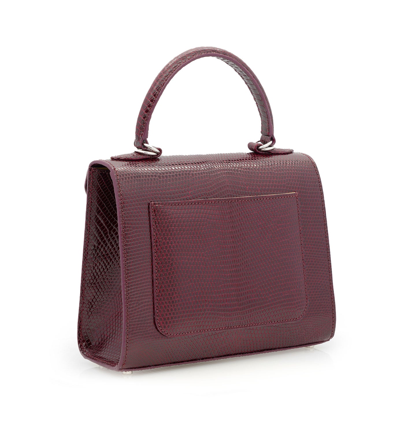 Iconic Cardinal 'First Lady' bag has a pure, structured and ladylike shape.This bestseller model is released with a new Cardinal logo as lucky clover as one of the characteristic symbols of Milan art and architecture . This timeless bag is handcrafted in Milan from genuine lizard leather in very versatile and elegant burgundy color. The top handle is comfortable for hand or elbow carry and a removable strap for over-the-shoulder wear. A magnetic closure keeps your essentials safe, there are one external and one internal pockets.To dress - from morning to evening.