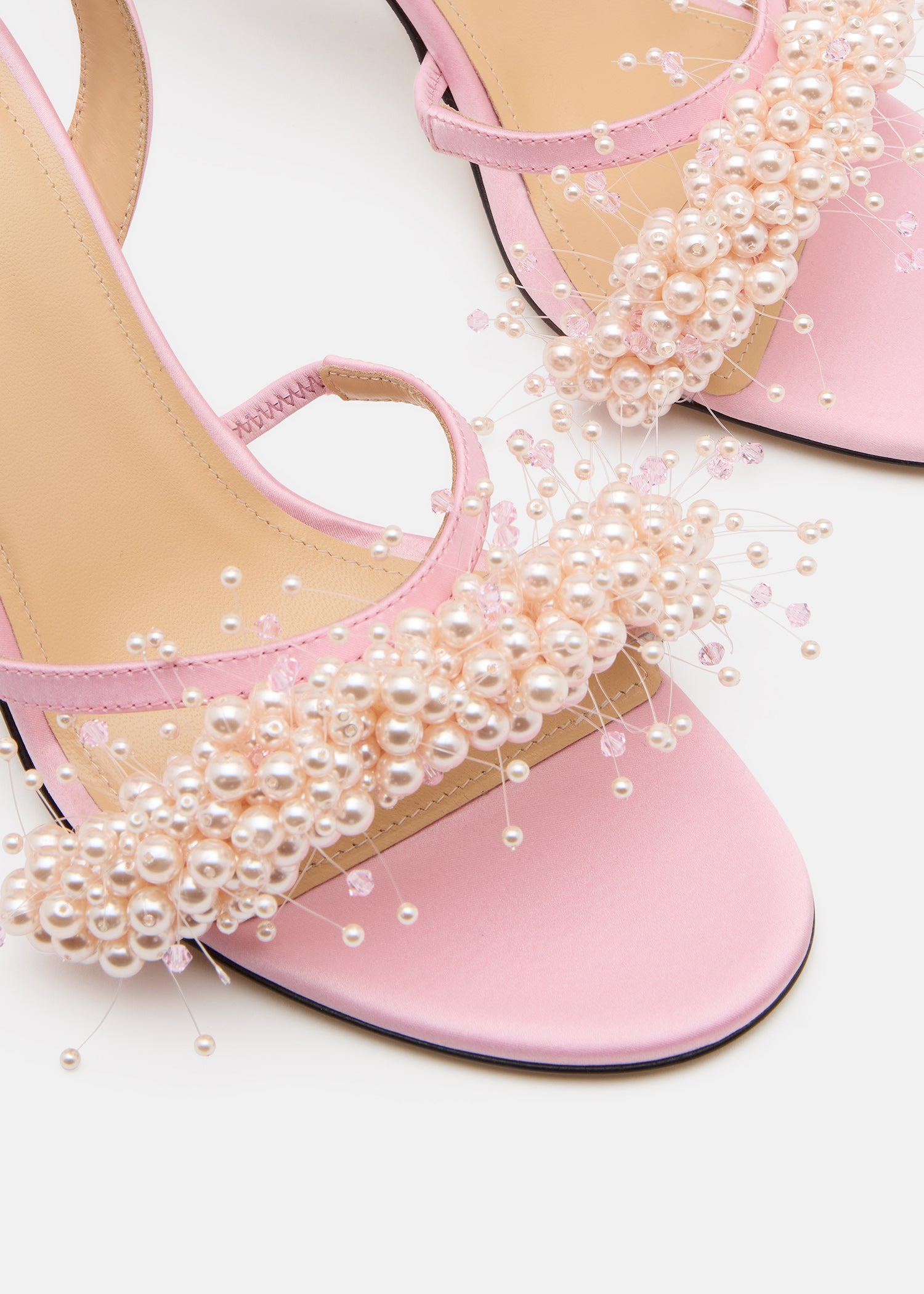 FLOATING PEARL PINK SATIN SANDALS (85MM)