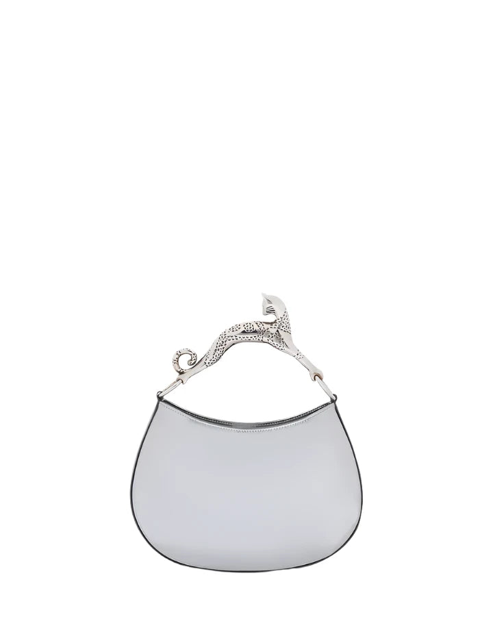 Embellished with a sculptural cat handle, this hobo bag with soft and elegant lines can be carried in the hand or over the shoulder.