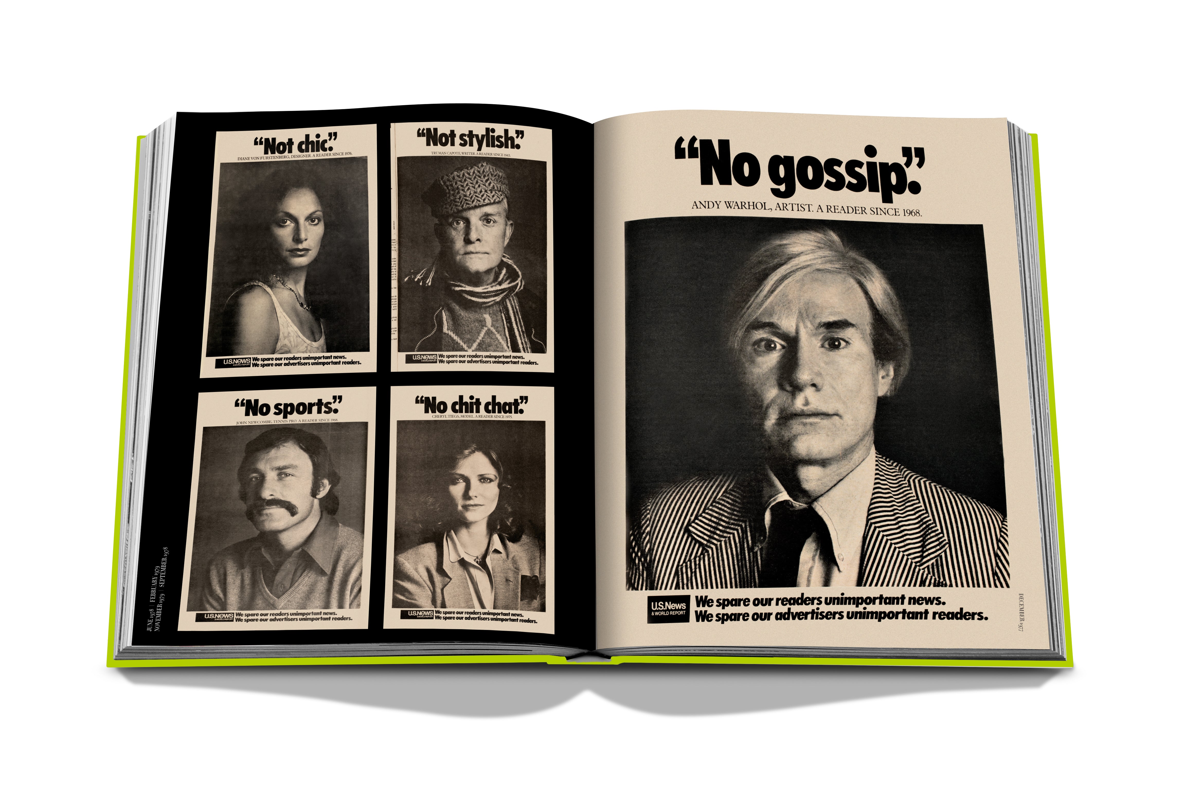 With an introduction from former editor Bob Colacello, essays from editor-in-chief Nick Haramis and editor-at-large Christopher Bollen, and additional contributions from Interview alumni and friends André Leon Talley, Camille Paglia, Christopher Makos, Diane von Furstenberg, Donna Jordan, Eric Boman, Fran Lebowitz, Greil Marcus, Kate Moss, Lauren Tabach-Bank, Marc Balet, Marisa Berenson, Mats Gustafson, Mel Ottenberg, Michael Kors, Paige Powell, Pat Cleveland, Pat Hackett, Patrick McMullan, Richard Turley, Sam Shahid, Sandra Brant, Shelley Wanger, Stephen Mooallem, Tama Janowitz and Victoria Bartlett.