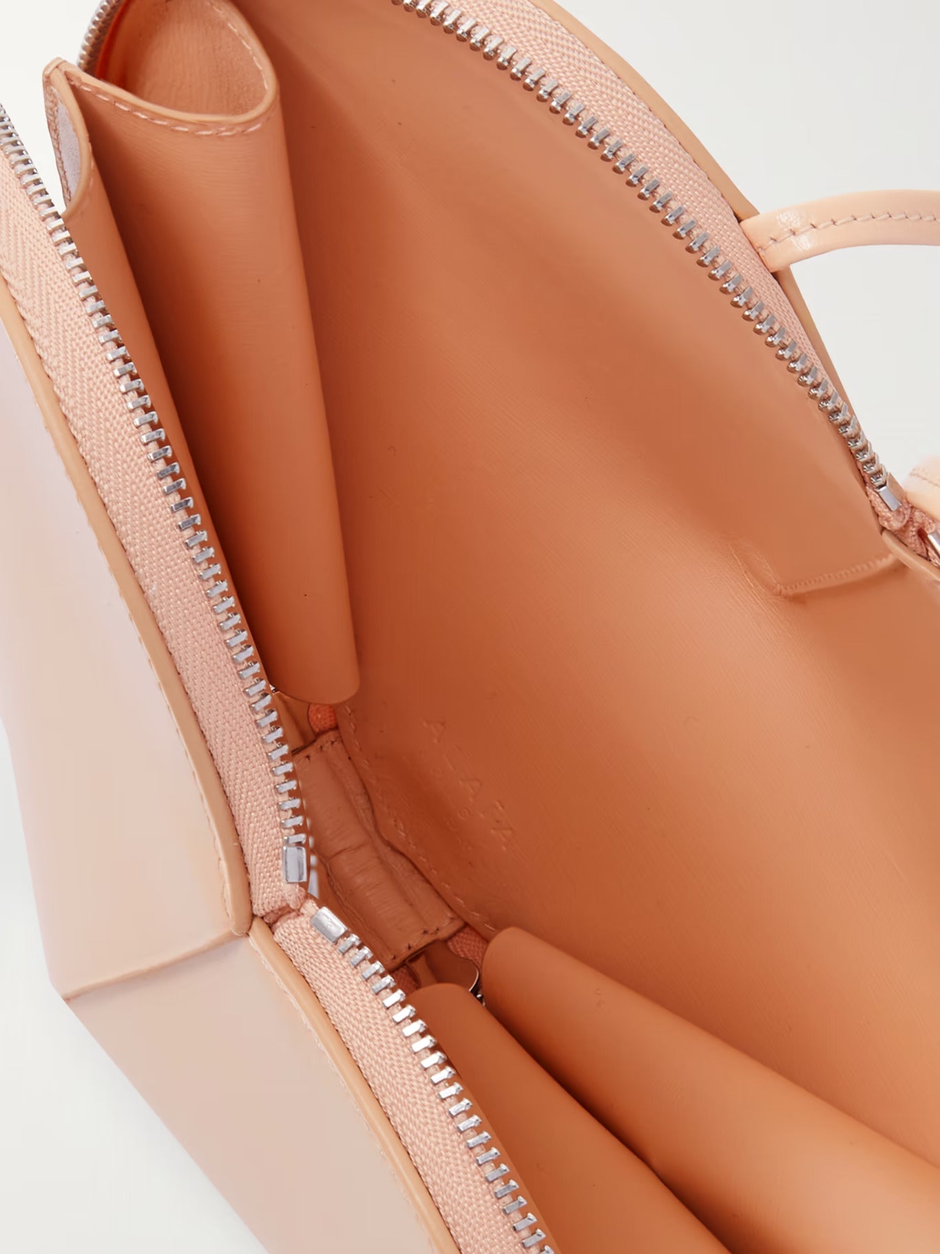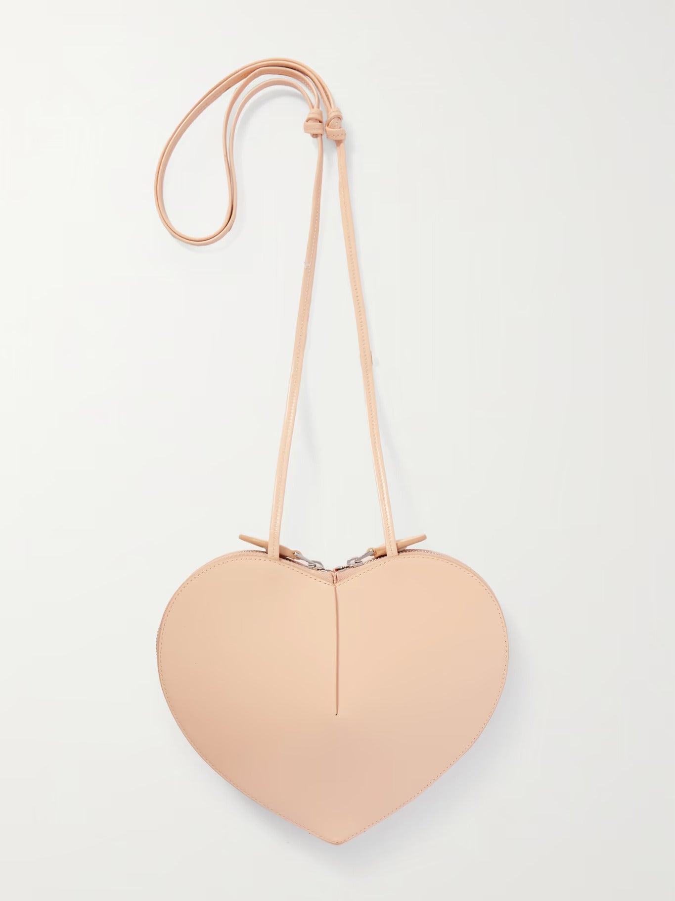 Heart bag, a simple cut in the leather creates volume and pure shape, zip closure, adjustable strap.