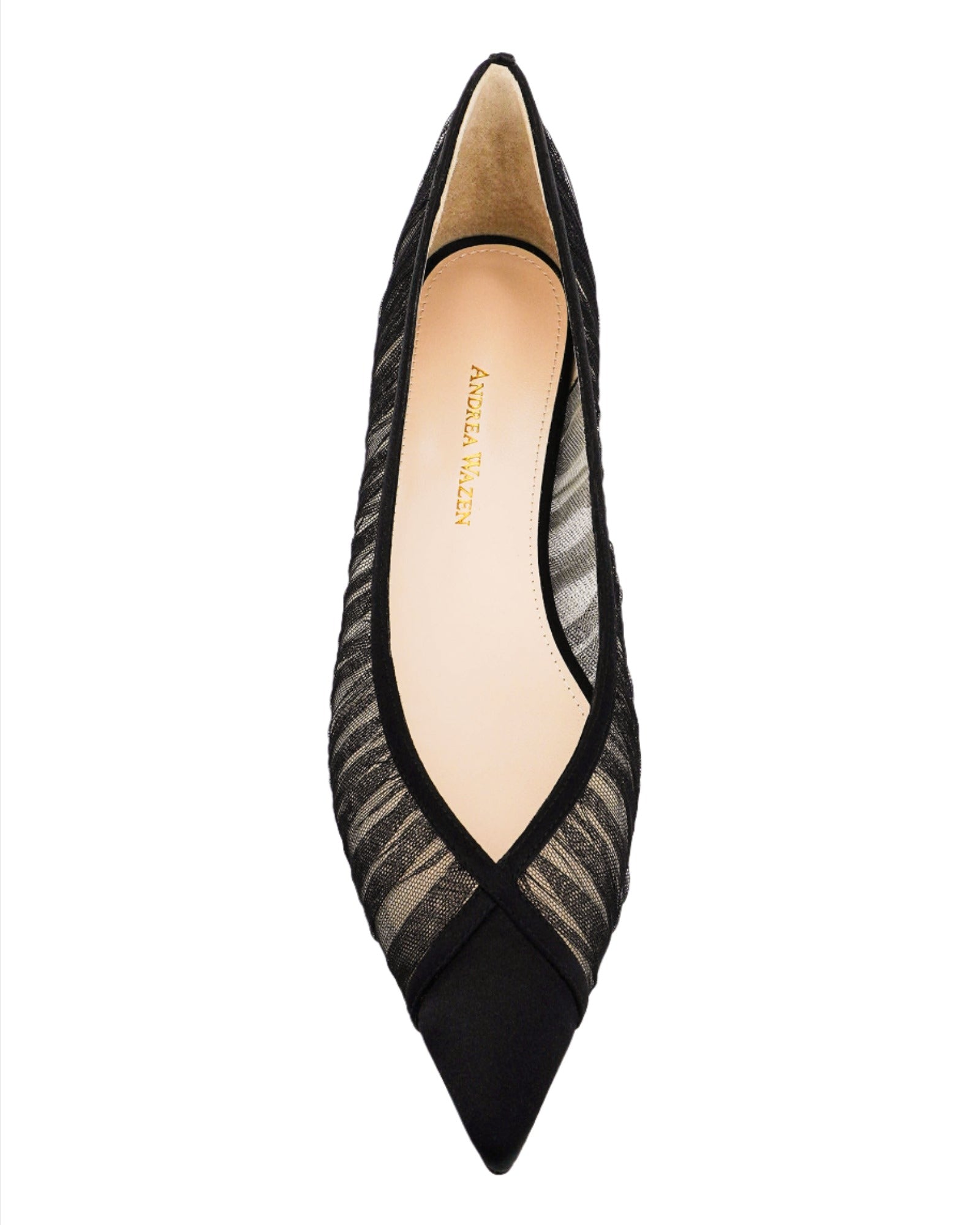 The NORA BALLERINA, is a flat version of the NORA PUMP. Its design includes a slightly see-through tulle adding a delicate, airy feel. The shoe features a closed, pointy toe and an elegant detail on the upper, creating a sophisticated and stylish look perfect for any occasion.
