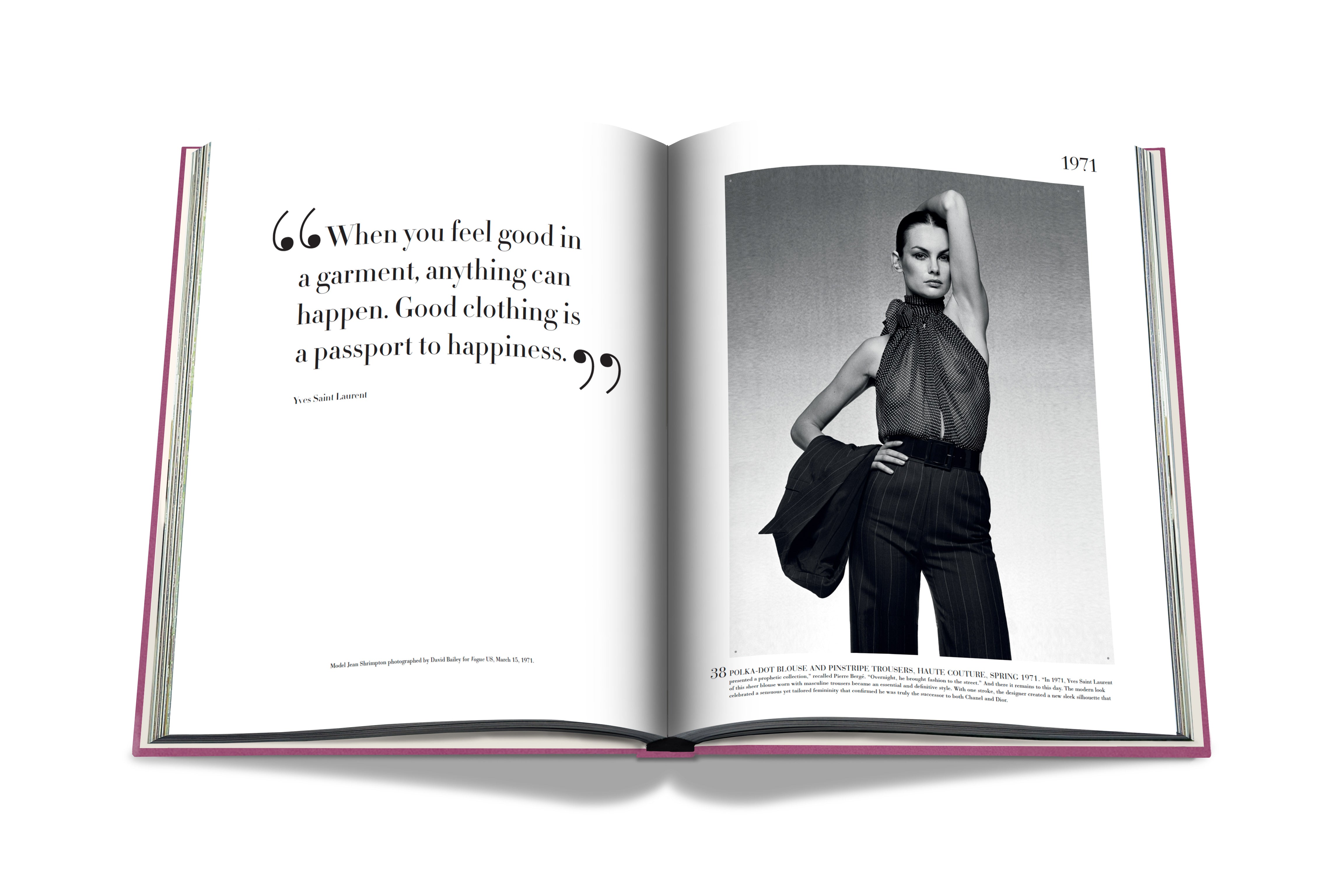 With esteemed fashion journalist and Saint Laurent expert Laurence Benaïm, Assouline has curated the 100 most iconic signature pieces from Yves Saint Laurent’s forty-year oeuvre, from the very first looks that appeared on the runway in his eponymous debut collection in January 1962 following his departure from Dior, to his final couture presentation upon his retirement in 2002.